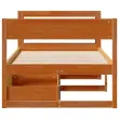 Zagotovite si boljši spanec s tem posteljnim okvirjem! Je prijeten dodatek za vsako spalnico. Stabilen in dolgotrajen okvir: Trdna borovina je znana po svoji trdnosti in trajnosti. Ravni vzorci in značilni vozli prispevajo k njenemu rustikalnemu čaru.Podnožje z letvami za optimalno podporo: Za podporo in zračnost ležišča je posteljni okvir opremljen z letvenim dnom.Popolnoma izkoriščen prostor: Ta posteljni okvir ima spodaj dva predala, ki omogočata shranjevanje predmetov, kot so dodatna posteljnina, sezonska oblačila in igrače.Veliko prostora za shranjevanje: To elegantno posteljno vzglavje ima dve priročni polici, ki ponujata veliko prostora za shranjevanje, da bodo vaše večerne potrebščine na dosegu roke.Samostoječe vzglavje: Samostoječe vzglavje ponuja brezskrbno rešitev za enostavno postavitev in premikanje brez potrebe po vgradnji na steno. Dobro je vedeti:Vzmetnica ni priložena tej postelji. Ponujamo različno izbiro ležišč. V naši trgovini si lahko ogledate ustrezne vzmetnice.Barva: Voščeno rjavaMaterial: Trdna borovinaMaterial letvic: Vezan lesCelotne dimenzije: 214,5 x 146 x 82 cm (D x Š x V)Velikost primerne vzmetnice: 75 x 190 cm (Š x D) (vzmetnica ni priložena)Dimenzije predala: 90,5 x 47 x 25,5 cm (D x Š x V)S policami za shranjevanjePotrebno sestavljanje: Da Paket vsebuje:1 x Posteljni okvir1 x Vzglavje2 x Predal