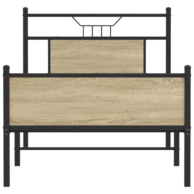 Zagotovite si boljši spanec s tem posteljnim okvirjem! Je prijeten dodatek za vsako spalnico. Stabilen in dolgotrajen okvir: Jeklo je močno, stabilno in trpežno, zato je idealna izbira za številne aplikacije, od proizvodnje pohištva do gradbeništva.Funkcionalno vzglavje in podnožje: Vzglavje in podnožje posteljnega dna ohranjata ležišče na mestu. Poleg tega vzglavje zagotavlja odlično oporo hrbtu, ko sedite v postelji in berete ali gledate televizijo.Dodaten prostor za shranjevanje: Za udobje ima posteljni podstavek pod seboj dodaten prostor, v katerem lahko shranite škatle za shranjevanje, ki niso vidne.Podnožje z letvami za optimalno podporo: Kovinski posteljni okvir je opremljen z letvenim dnom, ki zagotavlja oporo in zračnost ležišča. Dobro je vedeti:Vzmetnica ni priložena tej postelji. Ponujamo različno izbiro ležišč. V naši trgovini si lahko ogledate ustrezne vzmetnice.Barva: Sonoma hrastMaterial: Inženirski les in jekloCelotne dimenzije: 196 x 80,5 x 91,5 cm (D x Š x V)Višina prostora pod posteljo: 27 cmVelikost primerne vzmetnice: 75 x 190 cm (Š x D) (vzmetnica ni priložena)Z vzglavjem in podnožjemPotrebno sestavljanje: Da
