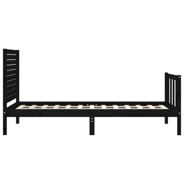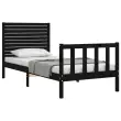 Posteljni okvir - Enojna postelja - Postelja za odrasle 75x190 cm z vzglavjem črn trden les-J16063