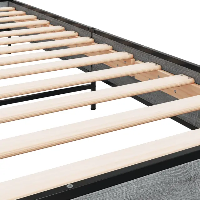 Zagotovite si boljši spanec s tem posteljnim okvirjem! Je prijeten dodatek za vsako spalnico. Vzdržljiv material: Inženirski les se ponaša z izjemno kakovostjo, gladko površino ter močjo, stabilnostjo in odpornostjo na vlago.Kovinske noge: Postelja je podprta s čvrstimi kovinskimi nogami, ki zagotavljajo njeno stabilnost, varnost in trdnost.Letvice iz vezanega lesa: Letvice iz vezanega lesa omogočajo dobro porazdelitev teže in zagotavljajo, da vzmetnica ostane na mestu ob vsakem zasuku in obračanju med spanjem.Odlična podpora: Vzglavje zagotavlja odlično oporo hrbtu, ko sedite v postelji in berete ali gledate televizijo. Dobro je vedeti:Vzmetnica ni priložena tej postelji. Ponujamo različno izbiro ležišč. V naši trgovini si lahko ogledate ustrezne vzmetnice.Barva: Siva sonomaMaterial posteljnega okvirja: Inženirski les, kovinaMaterial letvic: Vezan lesCelotne dimenzije: 203 x 93 x 74 cm (D x Š x V)Velikost primerne vzmetnice: 90 x 200 cm (Š x D) (vzmetnica ni priložena)Maksimalna nosilnost: 100 kgPotrebno sestavljanje: Da