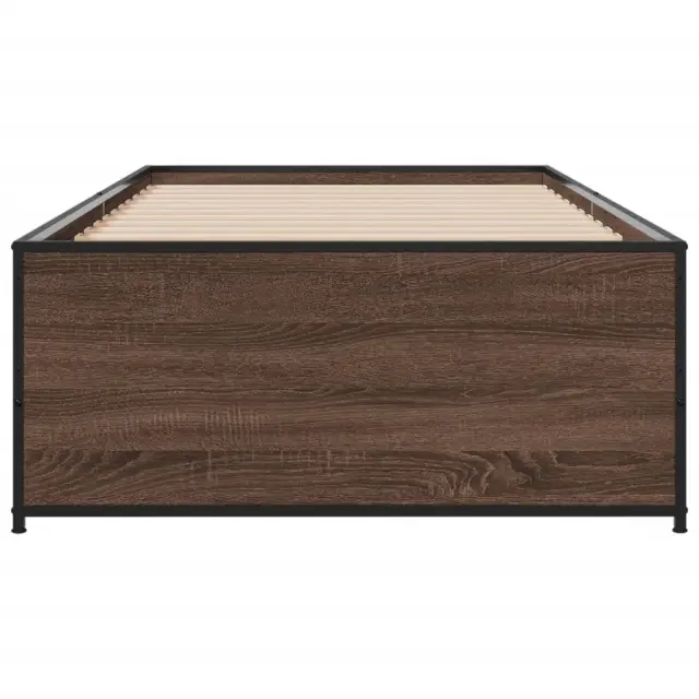 Zagotovite si boljši spanec s tem posteljnim okvirjem! Je prijeten dodatek za vsako spalnico. Vzdržljiv material: Inženirski les se ponaša z izjemno kakovostjo, gladko površino ter močjo, stabilnostjo in odpornostjo na vlago.Kovinske noge: Postelja je podprta s čvrstimi kovinskimi nogami, ki zagotavljajo njeno stabilnost, varnost in trdnost.Letvice iz vezanega lesa: Letvice iz vezanega lesa omogočajo dobro porazdelitev teže in zagotavljajo, da vzmetnica ostane na mestu ob vsakem zasuku in obračanju med spanjem. Dobro je vedeti:Vzmetnica ni priložena tej postelji. Ponujamo različno izbiro ležišč. V naši trgovini si lahko ogledate ustrezne vzmetnice.Barva: Rjav hrastMaterial: Inženirski les, jekloMaterial letvic: Vezan lesCelotne dimenzije: 193 x 93 x 40,5 cm (D x Š x V)Velikost primerne vzmetnice: 90 x 190 cm (Š x D) (vzmetnica ni priložena)Potrebno sestavljanje: Da