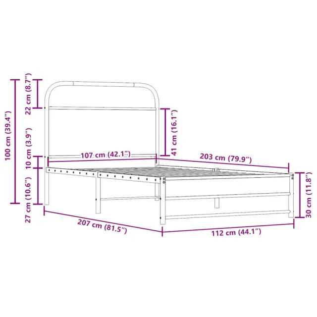 Če iščete trpežen posteljni okvir za svojo spalnico, je ta klasični posteljni okvir z elegantnim in brezčasnim dizajnom popolna izbira!Robustna kovinska konstrukcija: Okvir postelje je izdelan iz jekla. Jeklo je izjemno trd in močan material, ki zagotavlja izjemno trdnost in stabilnost.Stabilne in vzdržljive noge: Ta postelja ima trdne noge, ki zagotavljajo stabilnost, varnost in trdnost.Vsestransko vzglavje: Ta posteljni okvir je opremljen z vzglavjem, ki zagotavlja odlično oporo hrbtu, ko sedite v postelji in berete ali gledate televizijo, hkrati pa služi tudi kot dekorativni element.Podnožje z letvami za optimalno podporo: Za podporo in zračnost ležišča je posteljni okvir opremljen z letvenim dnom.Dobro je vedeti:Vzmetnica ni vključena v to posteljo. Ponujamo različne vzmetnice. V naši trgovini lahko poiščete ustrezno ležišče.Barva: Dimljeni hrastMaterial: Jeklo, inženirski lesCelotne dimenzije: 207 x 112 x 100 cm (D x Š x V)Višina prostora pod posteljo: 27 cmPrimerna velikost vzmetnice: 107 x 203 cm (Š x D) (vzmetnica ni priložena)Z vzglavjemPotrebno sestavljanje: Da