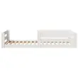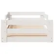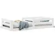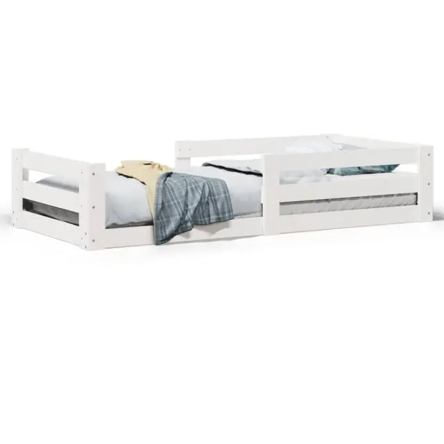 Zagotovite si boljši spanec s tem posteljnim okvirjem! Je prijeten dodatek za vsako spalnico. Stabilen in dolgotrajen okvir: Trdna borovina je znana po svoji trdnosti in trajnosti. Ravni vzorci in značilni vozli prispevajo k njenemu rustikalnemu čaru.Podnožje z letvami za optimalno podporo: Za podporo in zračnost ležišča je posteljni okvir opremljen z letvenim dnom.Dodaten prostor za shranjevanje: Za večje udobje je pod leseno posteljo dodaten prostor, v katerem lahko shranite škatle za shranjevanje, da bodo lepo skrite.Stabilne in vzdržljive noge: Ta postelja je podprta z robustnimi nogami, ki zagotavljajo stabilnost, varnost in trdnost.Vsestransko vzglavje: Ta panelna postelja je opremljena z vzglavjem, ki zagotavlja odlično oporo hrbtu, ko sedite v postelji in berete ali gledate televizijo, hkrati pa služi tudi kot dekorativni element. Dobro je vedeti:Vzmetnica ni priložena tej postelji. Ponujamo različno izbiro ležišč. V naši trgovini si lahko ogledate ustrezne vzmetnice.Barva: BelaMaterial: Trdna borovinaMaterial letvic: Vezan lesDimenzije: 147 x 77 x 41,5 cm (D x Š x V)Velikost primerne vzmetnice: 70 x 140 cm (Š x D) (vzmetnica ni priložena)Potrebno sestavljanje: Da
