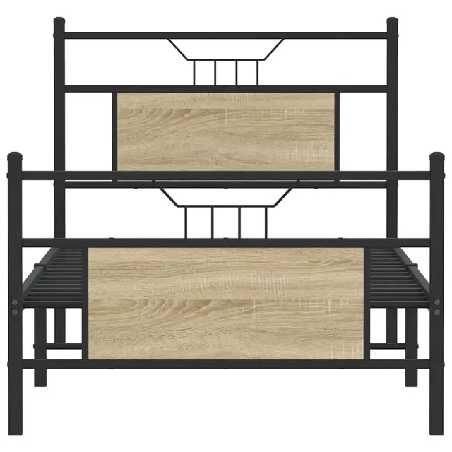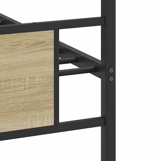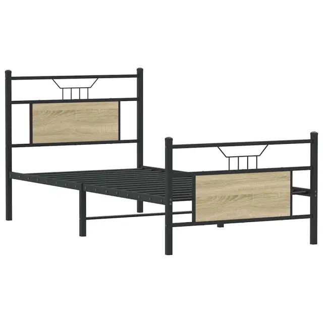 Zagotovite si boljši spanec s tem posteljnim okvirjem! Je prijeten dodatek za vsako spalnico. Stabilen in dolgotrajen okvir: Jeklo je močno, stabilno in trpežno, zato je idealna izbira za številne aplikacije, od proizvodnje pohištva do gradbeništva.Funkcionalno vzglavje in podnožje: Vzglavje in podnožje posteljnega dna ohranjata ležišče na mestu. Poleg tega vzglavje zagotavlja odlično oporo hrbtu, ko sedite v postelji in berete ali gledate televizijo.Dodaten prostor za shranjevanje: Za udobje ima posteljni podstavek pod seboj dodaten prostor, v katerem lahko shranite škatle za shranjevanje, ki niso vidne.Podnožje z letvami za optimalno podporo: Kovinski posteljni okvir je opremljen z letvenim dnom, ki zagotavlja oporo in zračnost ležišča. Dobro je vedeti:Vzmetnica ni priložena tej postelji. Ponujamo različno izbiro ležišč. V naši trgovini si lahko ogledate ustrezne vzmetnice.Barva: Sonoma hrastMaterial: Inženirski les in jekloCelotne dimenzije: 207 x 85,5 x 91,5 cm (D x Š x V)Višina prostora pod posteljo: 27 cmVelikost primerne vzmetnice: 80 x 200 cm (Š x D) (vzmetnica ni priložena)Z vzglavjem in podnožjemPotrebno sestavljanje: Da