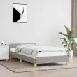 Zagotovite si boljši spanec s tem posteljnim okvirjem z vzglavjem! Je prijeten dodatek za vsako spalnico. Trpežno blago: Blago zagotavlja preprost in čist videz, poleg tega pa je zračno in trpežno.Podporne noge: Postelja je podprta s čvrstimi nogami, ki zagotavljajo njeno stabilnost, varnost in trdnost.Letvice iz vezanega lesa: Letvice iz vezanega lesa omogočajo dobro porazdelitev teže in zagotavljajo, da vzmetnica ostane na mestu ob vsakem zasuku in obračanju med spanjem. Opomba:Paket vsebuje samo posteljni okvir. Vzmetnica ni priložena. V naši trgovini si lahko ogledate ustrezne vzmetnice.Vsakemu izdelku je priložen priročnik za enostavno sestavljanje. Dobro je vedeti:Zaradi varčevanja s prostorom so nekateri deli ali blazine zapakirani v notranjost pohištva - preverite, ali so v predalih z zadrgo ali pod prevleko sedeža skriti kakšni sestavni deli.Barva: Svetlo sivaMaterial: Blago (100 % poliester), vezan les, konstruiran lesCelotne dimenzije: 207 x 103 x 50 cm (D x Š x V)Velikost primerne vzmetnice: 100 x 200 cm (Š x D) (vzmetnica ni priložena)