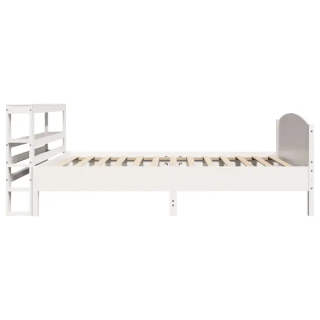 Zagotovite si boljši spanec s tem posteljnim okvirjem! Je prijeten dodatek za vsako spalnico. Stabilen in dolgotrajen okvir: Trdna borovina je znana po svoji trdnosti in trajnosti. Ravni vzorci in značilni vozli prispevajo k njenemu rustikalnemu čaru.Podnožje z letvami za optimalno podporo: Za podporo in zračnost ležišča je posteljni okvir opremljen z letvenim dnom.Vsestransko vzglavje: Ta posteljni okvir je opremljen z vzglavjem, ki zagotavlja odlično oporo hrbtu, ko sedite v postelji in berete ali gledate televizijo, hkrati pa služi tudi kot dekorativni element.Veliko prostora za shranjevanje: To elegantno vzglavje ima dve priročni polici, ki ponujata veliko prostora za shranjevanje, da bodo vaše večerne potrebščine na dosegu roke. Dobro je vedeti:Vzmetnica ni priložena tej postelji. Ponujamo različno izbiro ležišč. V naši trgovini si lahko ogledate ustrezne vzmetnice.Barva: BelaMaterial posteljnega okvirja: Trdna borovinaMaterial letvic: Vezan lesCelotne dimenzije: 214,5 x 146 x 82 cm (D x Š x V)Velikost primerne vzmetnice: 75 x 190 cm (Š x D) (vzmetnica ni priložena)S policami za shranjevanjePotrebno sestavljanje: DaPaket vsebuje:1 x Posteljni okvir1 x Vzglavje