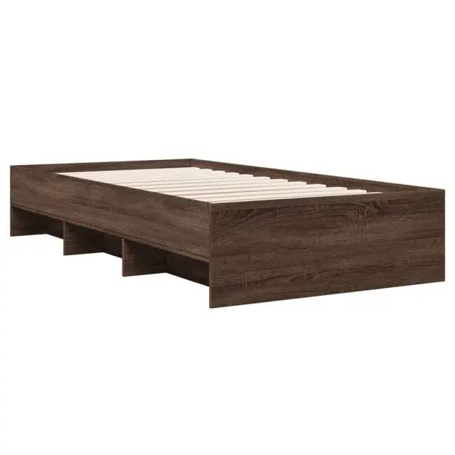 Zagotovite si boljši spanec s tem posteljnim okvirjem! Je prijeten dodatek za vsako spalnico. Vzdržljiv material: Posteljni okvir je izdelan iz inženirskega lesa. Inženirski les se ponaša z izjemno kakovostjo, gladko površino ter močjo, stabilnostjo in odpornostjo na vlago.Podnožje z letvami za optimalno podporo: Za podporo in zračnost ležišča je posteljni okvir opremljen z letvenim dnom.Funkcija shranjevanja: Ta posteljni okvir ima odprte predelke za dobro organizacijo revij, knjig, igrač in drugih manjših predmetov. Dobro je vedeti:Vzmetnica ni priložena tej postelji. Ponujamo različno izbiro ležišč. V naši trgovini si lahko ogledate ustrezne vzmetnice.Barva: Rjav hrastMaterial posteljnega okvirja: Inženirski lesMaterial letvic: Vezan lesCelotne dimenzije: 193 x 93 x 35 cm (D x Š x V)Dimenzije predelka (vsak): 63,5/60 x 18,5 x 15 cm (D x Š x V)Velikost primerne vzmetnice: 90 x 190 cm (Š x D) (vzmetnica ni priložena)Potrebno sestavljanje: Da