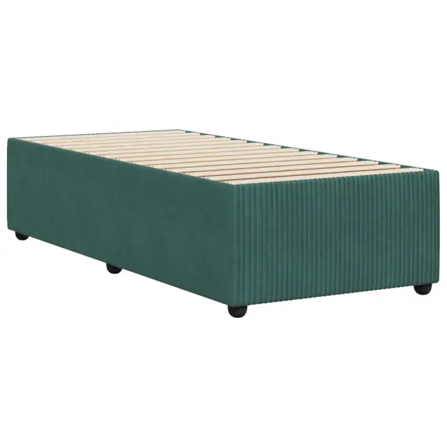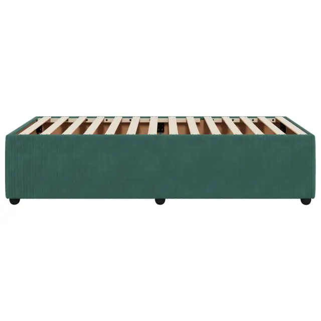 Zagotovite si boljši spanec s tem posteljnim okvirjem! Je prijeten dodatek za vsako spalnico. Mehak in udoben material: Vlažna tkanina iz žameta ima mehko in gladko površino, ki zagotavlja prijeten občutek ter vam zagotavlja toploto in popolno udobje.Letvice za optimalno podporo: Ta posteljni okvir je opremljen z letvicami, ki zagotavljajo osnovno podporo in zračnost vašega ležišča.Stabilne in vzdržljive noge: Ta postelja je podprta z robustnimi nogami, ki zagotavljajo stabilnost, varnost in trdnost. Dobro je vedeti:Vzmetnica ni priložena tej postelji. Ponujamo različno izbiro ležišč. V naši trgovini si lahko ogledate ustrezne vzmetnice.Barva: Temno zelenaMaterial: Žamet (100 % poliester), vezan les, konstruiran lesDimenzije: 200 x 90 x 46 cm (D x Š x V)Velikost primerne vzmetnice: 90 x 200 cm (Š x D) (vzmetnica ni priložena)Utrjene plastične nogicePotrebno sestavljanje: Da