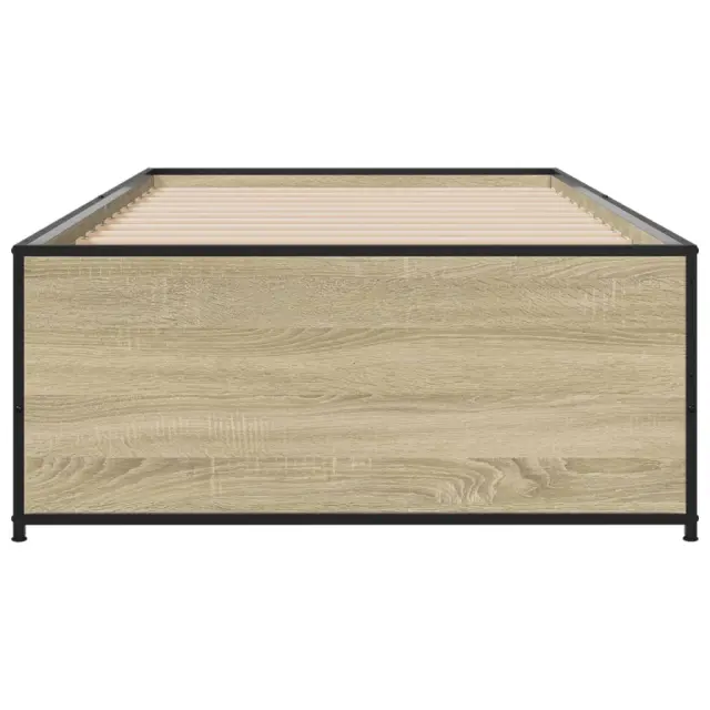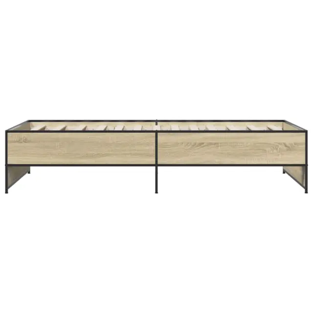 Zagotovite si boljši spanec s tem posteljnim okvirjem! Je prijeten dodatek za vsako spalnico. Vzdržljiv material: Inženirski les se ponaša z izjemno kakovostjo, gladko površino ter močjo, stabilnostjo in odpornostjo na vlago.Kovinske noge: Postelja je podprta s čvrstimi kovinskimi nogami, ki zagotavljajo njeno stabilnost, varnost in trdnost.Letvice iz vezanega lesa: Letvice iz vezanega lesa omogočajo dobro porazdelitev teže in zagotavljajo, da vzmetnica ostane na mestu ob vsakem zasuku in obračanju med spanjem. Dobro je vedeti:Vzmetnica ni priložena tej postelji. Ponujamo različno izbiro ležišč. V naši trgovini si lahko ogledate ustrezne vzmetnice.Barva: Sonoma hrastMaterial: Inženirski les, jekloMaterial letvic: Vezan lesCelotne dimenzije: 203 x 93 x 40,5 cm (D x Š x V)Velikost primerne vzmetnice: 90 x 200 cm (Š x D) (vzmetnica ni priložena)Potrebno sestavljanje: Da