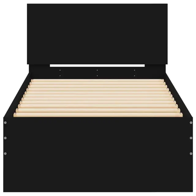 Zagotovite si boljši spanec s tem posteljnim okvirjem z vzglavjem! Je prijeten dodatek za vsako spalnico. Vzdržljiv material: Inženirski les se ponaša z izjemno kakovostjo, gladko površino ter močjo, stabilnostjo in odpornostjo na vlago.Odlična opora: Posteljno vzglavje vam zagotavlja odlično oporo za hrbet, medtem ko sedite v postelji in berete ali gledate televizijo.Trdne letvice: Letvice iz vezanega lesa omogočajo dobro porazdelitev teže in zagotavljajo, da vzmetnica ostane na mestu ob vsakem zasuku in obračanju med spanjem. Dobro je vedeti:Vzmetnica ni priložena tej postelji. Ponujamo različno izbiro ležišč. V naši trgovini si lahko ogledate ustrezne vzmetnice.Barva: ČrnaMaterial posteljnega okvirja: Inženirski lesMaterial letvic: Vezan lesCelotne dimenzije: 193 x 80 x 70 cm (D x Š x V)Velikost primerne vzmetnice: 75 x 190 cm (Š x D) (vzmetnica ni priložena)Potrebno sestavljanje: Da