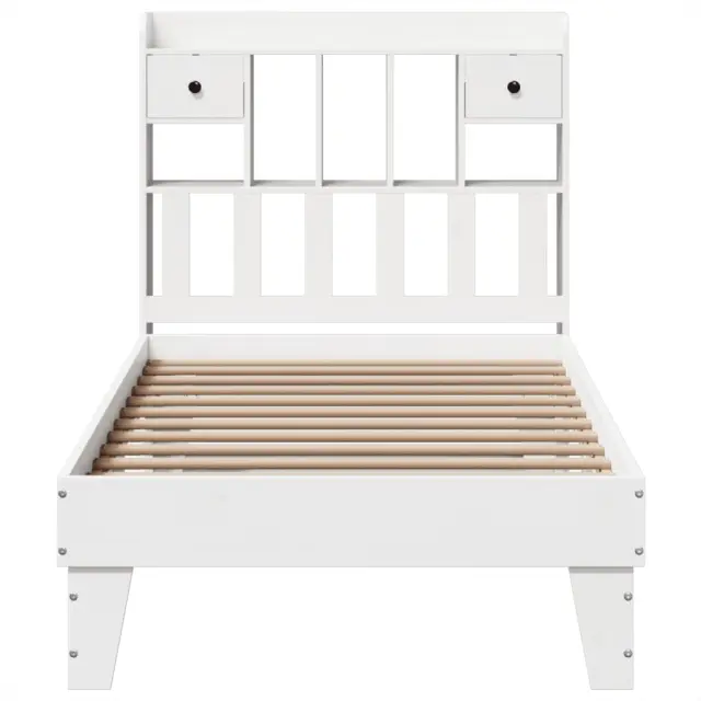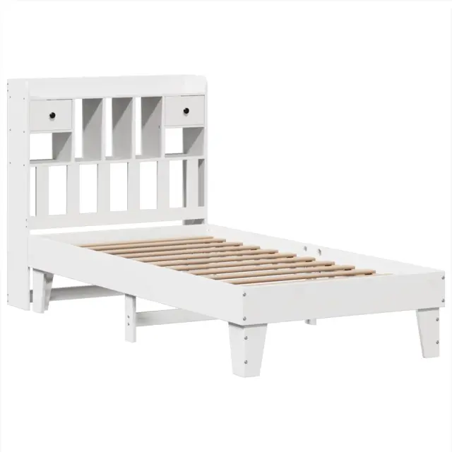 Zagotovite si boljši spanec s tem posteljnim okvirjem! Je prijeten dodatek za vsako spalnico. Stabilen in dolgotrajen okvir: Trdna borovina je znana po svoji trdnosti in trajnosti. Ravni vzorci in značilni vozli prispevajo k njenemu rustikalnemu čaru.Podnožje z letvami za optimalno podporo: Za podporo in zračnost ležišča je posteljni okvir opremljen z letvenim dnom.Dodaten prostor za shranjevanje: To elegantno vzglavje ima 3 priročne predelke in 2 predala, ki nudijo dovolj prostora za shranjevanje, da so vse vaše nočne potrebščine na dosegu roke. Za večje udobje je pod leseno posteljo dodaten prostor, v katerem lahko shranite škatle za shranjevanje, da bodo lepo skrite.Stabilne in vzdržljive noge: Ta postelja je podprta z robustnimi nogami, ki zagotavljajo stabilnost, varnost in trdnost.Samostoječe vzglavje: Samostoječe vzglavje ponuja brezskrbno rešitev za enostavno postavitev in premikanje brez potrebe po vgradnji na steno. Dobro je vedeti:Vzmetnica ni priložena tej postelji. Ponujamo različno izbiro ležišč. V naši trgovini si lahko ogledate ustrezne vzmetnice.Barva: BelaMaterial: Trdna borovinaMaterial letvic: Vezan lesDimenzije: 226,5 x 96 x 110 cm (D x Š x V)Velikost primerne vzmetnice: 90 x 200 cm (Š x D) (vzmetnica ni priložena)S predelki za shranjevanjeZ 2 predalomaPotrebno sestavljanje: Da
