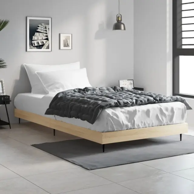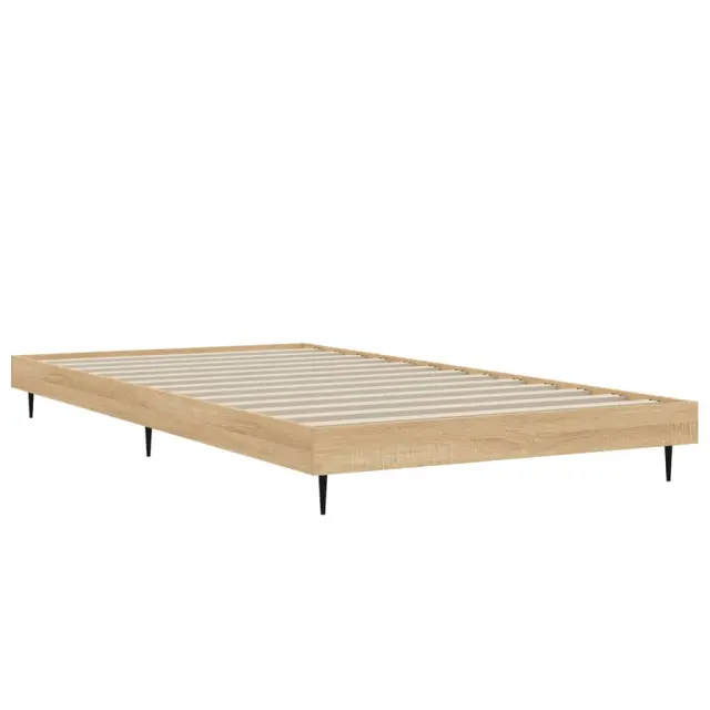 Zagotovite si boljši spanec s tem posteljnim okvirjem! Je prijeten dodatek za vsako spalnico. Vzdržljiv material: Inženirski les se ponaša z izjemno kakovostjo, gladko površino ter močjo, stabilnostjo in odpornostjo na vlago.Kovinske noge: Postelja je podprta s čvrstimi kovinskimi nogami, ki zagotavljajo njeno stabilnost, varnost in trdnost.Letvice iz vezanega lesa: Letvice iz vezanega lesa omogočajo dobro porazdelitev teže in zagotavljajo, da vzmetnica ostane na mestu ob vsakem zasuku in obračanju med spanjem. Dobro je vedeti:Vzmetnica ni priložena tej postelji. Ponujamo različno izbiro ležišč. V naši trgovini si lahko ogledate ustrezne vzmetnice.Barva: Sonoma hrastMaterial posteljnega okvirja: Inženirski les, kovinaMaterial letvic: Vezan lesCelotne dimenzije: 203 x 93 x 20 cm (D x Š x V)Velikost primerne vzmetnice: 90 x 200 cm (Š x D) (vzmetnica ni priložena)Potrebno sestavljanje: Da