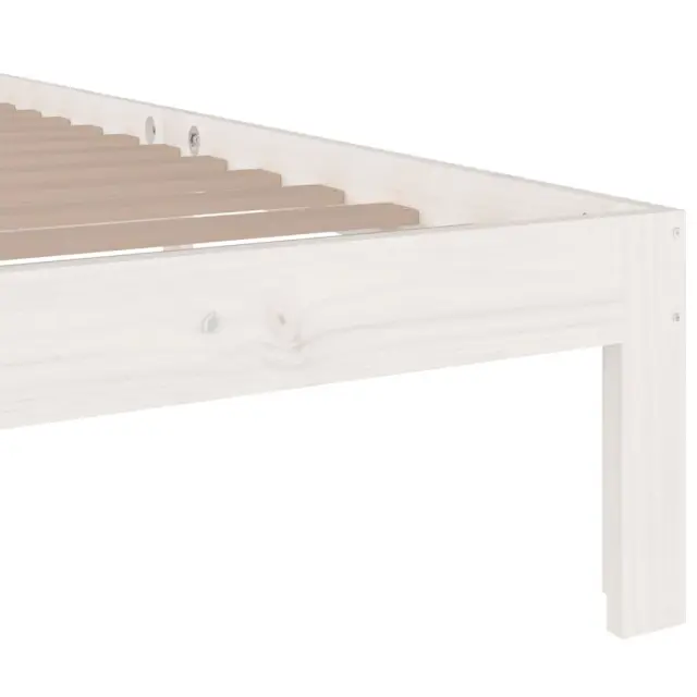 Ustvarite moderno spalnico s tem lesenim posteljnim okvirjem! To je praktičen in dekorativen dodatek za vaše notranje prostore. Vrhunska trdna borovina: Trdna borovina je čudovit naravni material. Borovina ima ravne vzorce, grče pa dajejo materialu njegov značilen, rustikalen videz.Močan posteljni okvir: Lesen okvir zagotavlja trdnost in stabilnost. Letvice iz vezanega lesa omogočajo dobro porazdelitev teže in zagotavljajo, da vzmetnica ostane na mestu ob vsakem zasuku in obračanju med spanjem.Udobno vzglavje: Klasično vzglavje omogoča udoben počitek med branjem ali gledanjem filma.Primerna uporaba: Ta enojna postelja je odlična rešitev za majhne prostore, večnamenske sobe, enoposteljna ležišča in starejše otroke. Ne glede na vaše potrebe ali načrte ta enojna postelja ustreza različnim potrebam! Opomba:Paket vsebuje samo posteljni okvir. Vzmetnica ni priložena. V naši trgovini si lahko ogledate ustrezne vzmetnice.Ta posteljni okvir je primeren za vzmetnico velikosti 75 x 190 cm (2FT6 Small Single).Barva: BelaMaterial posteljnega okvirja: Trdna borovinaMaterial letvic: Vezan lesCelotne dimenzije: 195,5 x 78,5 x 69,5 cm (D x Š x V)Velikost primerne vzmetnice: 75 x 190 cm (Š x D) (vzmetnica ni priložena)Potrebno sestavljanje: DaPaket vsebuje:1 x Posteljni okvir1 x Vzglavje