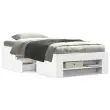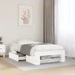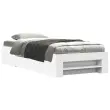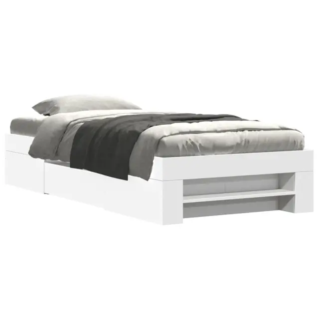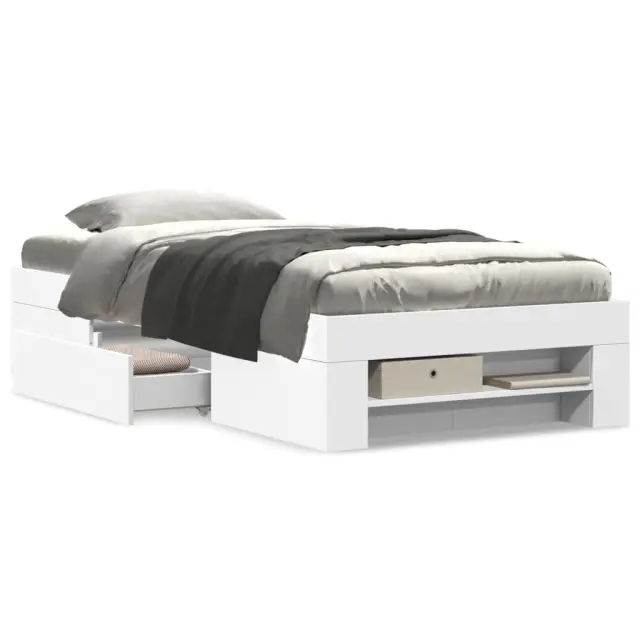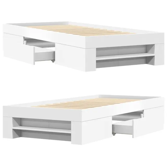 Zagotovite si boljši spanec s tem posteljnim okvirjem! Je prijeten dodatek za vsako spalnico. Vzdržljiv material: Posteljni okvir je izdelan iz inženirskega lesa. Inženirski les se ponaša z izjemno kakovostjo, gladko površino ter močjo, stabilnostjo in odpornostjo na vlago.Podnožje z letvami za optimalno podporo: Za podporo in zračnost ležišča je posteljni okvir opremljen z letvenim dnom.Funkcija shranjevanja: Ta posteljni okvir ima predale in odprte predelke za dobro organizacijo revij, knjig, igrač in drugih manjših predmetov. Dobro je vedeti:Vzmetnica ni priložena tej postelji. Ponujamo različno izbiro ležišč. V naši trgovini si lahko ogledate ustrezne vzmetnice.Barva: BelaMaterial posteljnega okvirja: Inženirski lesMaterial letvic: Vezan lesCelotne dimenzije: 193 x 78 x 33 cm (D x Š x V)Dimenzije predelkov (vsak): 54 x 14,5 x 10 cm (D x Š x V)Dimenzije predalov (vsak): 79,5 x 28,5 x 18 cm (D x Š x V)Velikost primerne vzmetnice: 75 x 190 cm (Š x D) (vzmetnica ni priložena)Potrebno sestavljanje: Da
