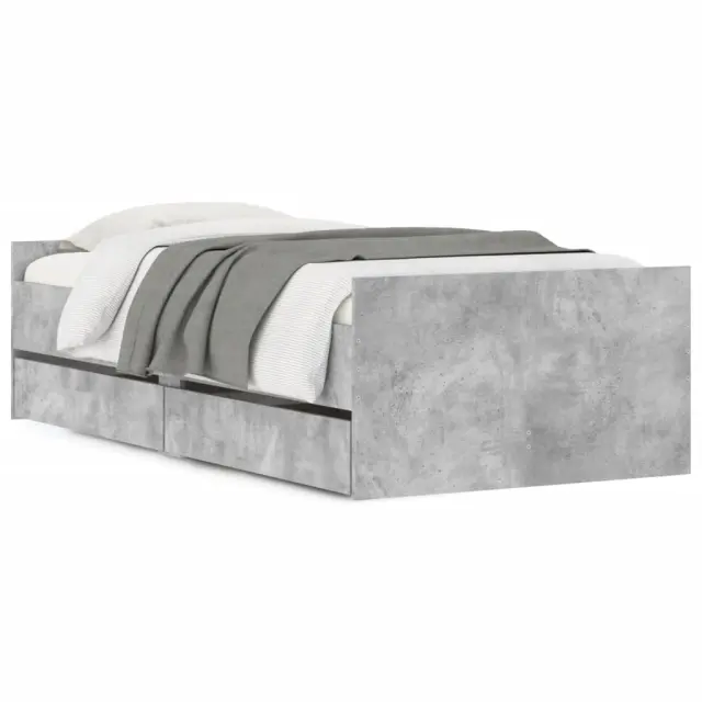 Dodajte svoji spalnici moderen pridih s tem posteljnim okvirjem s predali! Predstavlja praktičen in dekorativen dodatek za vaš bivalni prostor. Vzdržljiv material: Posteljni okvir je izdelan iz inženirskega lesa. Inženirski les se ponaša z izjemno kakovostjo, gladko površino ter močjo, stabilnostjo in odpornostjo na vlago.Trdne letvice: Letvice iz vezanega lesa omogočajo dobro porazdelitev teže in zagotavljajo, da vzmetnica ostane na mestu ob vsakem zasuku in obračanju med spanjem.Funkcija shranjevanja: Priloženi posteljni predali nudijo dovolj prostora za shranjevanje potrebščin, da bo soba čista in urejena. Dobro je vedeti:Vzmetnica ni priložena tej postelji. Ponujamo različno izbiro ležišč. V naši trgovini si lahko ogledate ustrezne vzmetnice.Barva: Betonsko sivaMaterial posteljnega okvirja: Inženirski lesMaterial letvic: Vezan lesCelotne dimenzije: 193 x 78 x 50 cm (D x Š x V)Dimenzije predala (vsak): 93,5 x 35 x 16,5 cm (D x Š x V)Velikost primerne vzmetnice: 75 x 190 cm (Š x D) (2FT6 Small Single) (vzmetnica ni priložena)Potrebno sestavljanje: DaPaket vsebuje:1 x Posteljni okvir2 x Predal