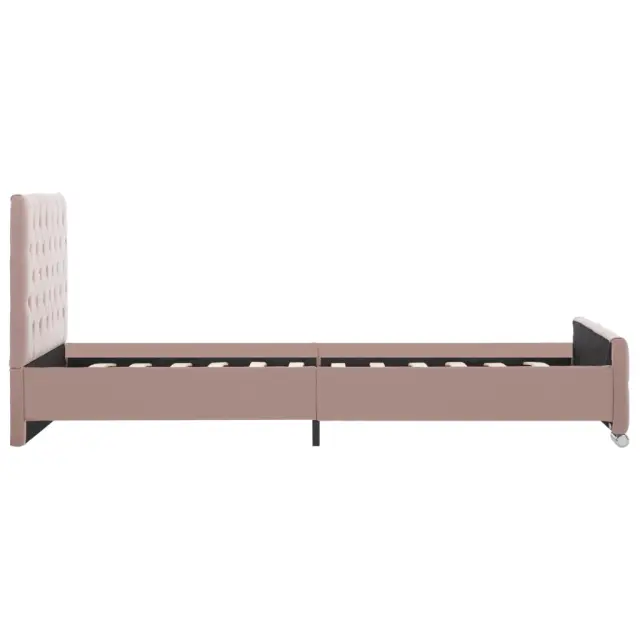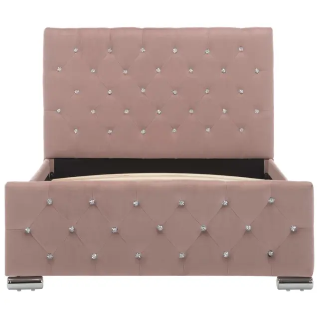 Ta klasičen posteljni okvir bo postal ključna točka vaše spalnice. Ta posteljni okvir s preprostim in elegantnim dizajnom bo dekorju v vaši spalnici dodal pridih elegance. Ta posteljni okvir iz lesa in jekla je zelo močan in vzdržljiv. Kovinske noge postelji dodajajo vzdržljivost. Postelja je oblazinjena v trpežen žamet, izžareva privlačen videz in je enostavna za čiščenje. Ta posteljni okvir je primeren za vzmetnico 100 x 200 cm. Upoštevajte, da paket vsebuje samo posteljni okvir; vzmetnica ni priložena. Postelja je preprosta za sestavo. V naši trgovini si lahko ogledate ujemajočo vzmetnico.Barva: RozaMaterial: Žamet (100 % poliester), vezani les, jekloCelotne dimenzije: 211 x 106 x 87 cm (D x Š x V)Velikost primerne vzmetnice: 100 x 200 cm (Š x D) (vzmetnica ni priložena)Spalna višina, merjena od tal: 27,5 cmPotrebno sestavljanje: Da
