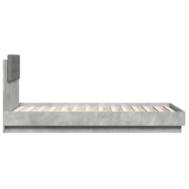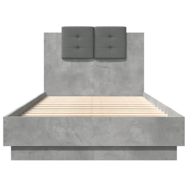 Zagotovite si boljši spanec s tem posteljnim okvirjem z vzglavjem! Je prijeten dodatek za vsako spalnico. Vzdržljiv material: Inženirski les se ponaša z izjemno kakovostjo, gladko površino ter močjo, stabilnostjo in odpornostjo na vlago.Letvice iz vezanega lesa: Letvice iz vezanega lesa omogočajo dobro porazdelitev teže in zagotavljajo, da vzmetnica ostane na mestu ob vsakem zasuku in obračanju med spanjem.Odlična podpora: Vzglavna stranica je napolnjena s peno za izjemno mehkobo in optimalno udobje ter zagotavlja odlično podporo hrbtu, ko sedite v postelji in berete ali gledate televizijo. Dobro je vedeti:Vzmetnica ni priložena tej postelji. Ponujamo različno izbiro ležišč. V naši trgovini si lahko ogledate ustrezne vzmetnice.Barva postelje: Betonsko sivaBarva blazine za vzglavje: Temno sivaMaterial posteljnega okvirja: Inženirski les, tkanina (100 % poliester)Material letvic: Vezan lesMaterial polnila blazine za vzglavje: PenaCelotne dimenzije: 194,5 x 93 x 84 cm (D x Š x V)Velikost primerne vzmetnice: 90 x 190 cm (Š x D) (vzmetnica ni priložena)Velikost blazine za vzglavje: 32 x 32 cm (D x Š)Potrebno sestavljanje: Da