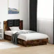 Zagotovite si boljši spanec s tem posteljnim okvirjem z vzglavjem! Je prijeten dodatek za vsako spalnico. Vzdržljiv material: Inženirski les se ponaša z izjemno kakovostjo, gladko površino ter močjo, stabilnostjo in odpornostjo na vlago.Letvice iz vezanega lesa: Letvice iz vezanega lesa omogočajo dobro porazdelitev teže in zagotavljajo, da vzmetnica ostane na mestu ob vsakem zasuku in obračanju med spanjem.Odlična podpora: Vzglavna stranica je napolnjena s peno za izjemno mehkobo in optimalno udobje ter zagotavlja odlično podporo hrbtu, ko sedite v postelji in berete ali gledate televizijo. Dobro je vedeti:Vzmetnica ni priložena tej postelji. Ponujamo različno izbiro ležišč. V naši trgovini si lahko ogledate ustrezne vzmetnice.Barva postelje: Dimljeni hrastBarva blazine za vzglavje: ČrnaMaterial posteljnega okvirja: Inženirski les, umetno usnje (60 % poliuretan, 30 % poliester, 10 % bombaž)Material letvic: Vezan lesMaterial polnila blazine za vzglavje: PenaCelotne dimenzije: 194,5 x 93 x 84 cm (D x Š x V)Velikost primerne vzmetnice: 90 x 190 cm (Š x D) (vzmetnica ni priložena)Velikost blazine za vzglavje: 32 x 32 cm (D x Š)Potrebno sestavljanje: Da