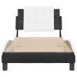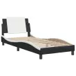 Zagotovite si boljši spanec s tem posteljnim okvirjem z vzglavjem! Je prijeten dodatek za vsako spalnico. Trpežno umetno usnje: Vrhunsko umetno usnje je zelo vzdržljiv material. Je odporno na madeže, zato ga lahko preprosto čistite z vlažno krpo. Gladka površina mu prav tako daje razkošen videz in lepoto pravega usnja.Letvice iz vezanega lesa: Letvice iz vezanega lesa omogočajo dobro porazdelitev teže in zagotavljajo, da vzmetnica ostane na mestu ob vsakem zasuku in obračanju med spanjem.Odlična podpora: Vzglavna stranica je napolnjena s peno za izjemno mehkobo in optimalno udobje ter zagotavlja odlično podporo hrbtu, ko sedite v postelji in berete ali gledate televizijo.Priročna zasnova: Oblazinjeno vzglavje ima zadrgo za enostavno namestitev.Valovita stranica: Valoviti videz posteljnega okvirja je eleganten in prefinjen. Dekorju v vašem domu dodaja sodoben in eleganten pridih ter tako postane osrednja točka spalnice. Dobro je vedeti:Vzmetnica ni priložena tej postelji. Ponujamo različno izbiro ležišč. V naši trgovini si lahko ogledate ustrezne vzmetnice.Posteljni okvir z vzglavjem:Barva: Črna in belaMaterial: Umetno usnje (75 % polivinilklorid, 5 % bombaž, 20 % poliester), kovina, trdna borovina, vezan les, inženirski lesCelotne dimenzije: 218 x 85 x 74,5 cm (D x Š x V)Velikost primerne vzmetnice: 80 x 200 cm (Š x D) (vzmetnica ni priložena)Oblazinjeno vzglavje:Barva: Bela in črnaMaterial: Umetno usnje (75 % polivinilklorid, 5 % bombaž, 20 % poliester)Material polnila: PenaDimenzije: 80 x 3 x 48 cm (D x Š x V)Širina primerne vzmetnice: 80 cmPotrebno sestavljanje: DaPaket vsebuje:1 x Posteljni okvir z vzglavjem1 x Oblazinjeno vzglavje