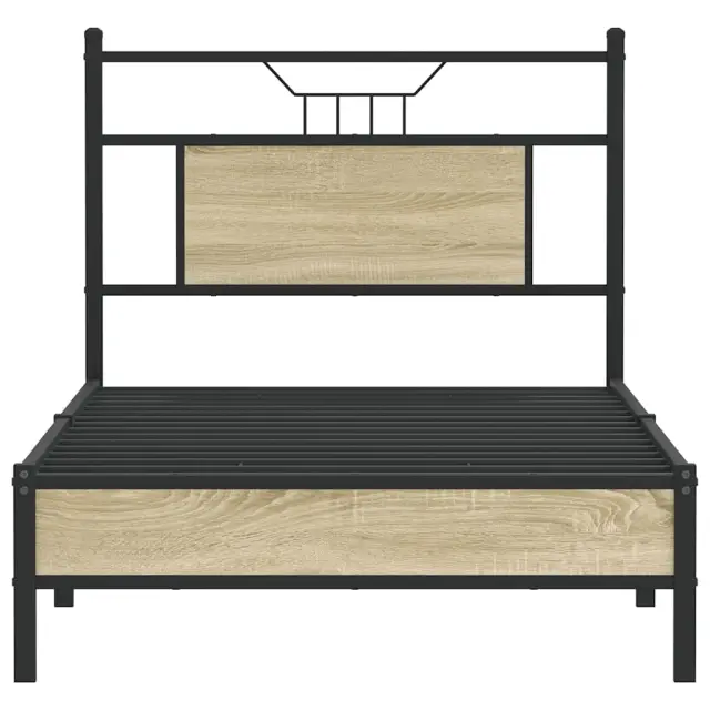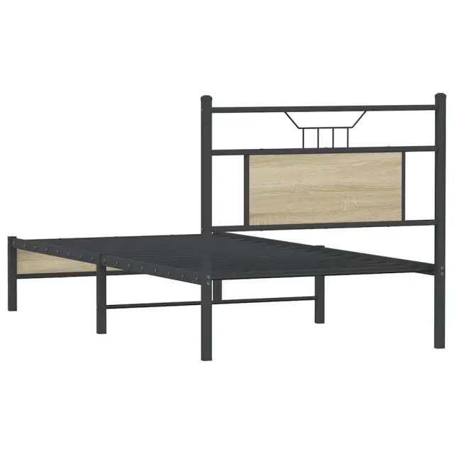 Zagotovite si boljši spanec s tem posteljnim okvirjem! Je prijeten dodatek za vsako spalnico. Stabilen in dolgotrajen okvir: Jeklo je močno, stabilno in trpežno, zato je idealna izbira za številne aplikacije, od proizvodnje pohištva do gradbeništva.Vsestransko vzglavje: Ta postelja je opremljena z vzglavjem, ki zagotavlja odlično oporo hrbtu, ko sedite v postelji in berete ali gledate televizijo, hkrati pa služi tudi kot dekorativni element.Dodaten prostor za shranjevanje: Za udobje ima posteljni podstavek pod seboj dodaten prostor, v katerem lahko shranite škatle za shranjevanje, ki niso vidne.Podnožje z letvami za optimalno podporo: Kovinski posteljni okvir je opremljen z letvenim dnom, ki zagotavlja oporo in zračnost ležišča. Dobro je vedeti:Vzmetnica ni priložena tej postelji. Ponujamo različno izbiro ležišč. V naši trgovini si lahko ogledate ustrezne vzmetnice.Barva: Sonoma hrastMaterial: Inženirski les in jekloCelotne dimenzije: 207 x 96 x 91,5 cm (D x Š x V)Višina prostora pod posteljo: 27 cmVelikost primerne vzmetnice: 90 x 200 cm (Š x D) (vzmetnica ni priložena)Z vzglavjemPotrebno sestavljanje: Da
