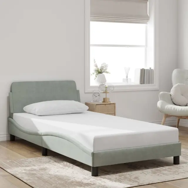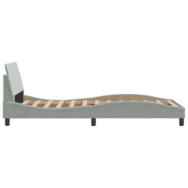 Zagotovite si boljši spanec s tem posteljnim okvirjem z vzglavjem! Je prijeten dodatek za vsako spalnico. Mehak žamet: Žamet je mehka in udobna tkanina, ki je prijetna do kože.Podporne noge: Postelja je podprta s čvrstimi nogami, ki zagotavljajo njeno stabilnost, varnost in trdnost.Letvice iz vezanega lesa: Letvice iz vezanega lesa omogočajo dobro porazdelitev teže in zagotavljajo, da vzmetnica ostane na mestu ob vsakem zasuku in obračanju med spanjem.Udobna opora: To vzglavje za posteljo vam zagotavlja odlično oporo za hrbet, ko sedite na postelji in berete ali gledate filme.Valovita stranica: Valoviti videz posteljnega okvirja je eleganten in prefinjen. Dekorju v vašem domu dodaja sodoben in eleganten pridih ter tako postane osrednja točka spalnice. Dobro je vedeti:Vzmetnica ni priložena tej postelji. Ponujamo različno izbiro ležišč. V naši trgovini si lahko ogledate ustrezne vzmetnice.Barva: Svetlo sivaMaterial: Žamet (100 % poliester), kovina, vezan les, inženirski lesCelotne dimenzije: 218 x 105 x 74,5 cm (D x Š x V)Velikost primerne vzmetnice: 100 x 200 cm (Š x D) (vzmetnica ni priložena)Potrebno sestavljanje: Da