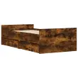 Dodajte svoji spalnici moderen pridih s tem posteljnim okvirjem s predali! Predstavlja praktičen in dekorativen dodatek za vaš bivalni prostor. Vzdržljiv material: Posteljni okvir je izdelan iz inženirskega lesa. Inženirski les se ponaša z izjemno kakovostjo, gladko površino ter močjo, stabilnostjo in odpornostjo na vlago.Trdne letvice: Letvice iz vezanega lesa omogočajo dobro porazdelitev teže in zagotavljajo, da vzmetnica ostane na mestu ob vsakem zasuku in obračanju med spanjem.Funkcija shranjevanja: Priloženi posteljni predali nudijo dovolj prostora za shranjevanje potrebščin, da bo soba čista in urejena. Dobro je vedeti:Vzmetnica ni priložena tej postelji. Ponujamo različno izbiro ležišč. V naši trgovini si lahko ogledate ustrezne vzmetnice.Barva: Dimljeni hrastMaterial posteljnega okvirja: Inženirski lesMaterial letvic: Vezan lesCelotne dimenzije: 193 x 78 x 50 cm (D x Š x V)Dimenzije predala (vsak): 93,5 x 35 x 16,5 cm (D x Š x V)Velikost primerne vzmetnice: 75 x 190 cm (Š x D) (2FT6 Small Single) (vzmetnica ni priložena)Potrebno sestavljanje: DaPaket vsebuje:1 x Posteljni okvir2 x Predal
