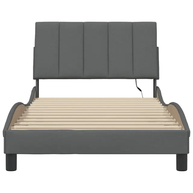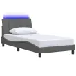 S tem posteljnim okvirjem z vzglavnikom si zagotovite mirnejši spanec! Trpežno blago: Blago zagotavlja preprost in čist videz, poleg tega pa je zračno in trpežno.Podporne noge: Postelja je podprta s čvrstimi nogami, ki zagotavljajo njeno stabilnost, varnost in trdnost.Letvice iz vezanega lesa: Letvice iz vezanega lesa omogočajo dobro porazdelitev teže in zagotavljajo, da vzmetnica ostane na mestu ob vsakem zasuku in obračanju med spanjem.Odlična podpora: Vzglavna stranica je napolnjena s PP vlakni za izjemno mehkobo in optimalno udobje ter zagotavlja odlično podporo hrbtu, ko sedite v postelji in berete ali gledate televizijo.LED osvetlitev za prijeten ambient: To posteljo odlikuje LED osvetlitev, ki jo je mogoče preprosto nastaviti in tako ustvariti posebno svetlobno predstavo. Prilagodite lahko načine, barve in svetlost ter tako izboljšate vzdušje v notranjem prostoru. Dobro je vedeti:Vzmetnica ni priložena tej postelji. Ponujamo različno izbiro ležišč. V naši trgovini si lahko ogledate ustrezne vzmetnice.Izdelek ima priključek USB, ki zahteva certificiran vir napajanja 5 V USB (ni priložen).Režete lahko samo del s simbolom škarij in samo del z USB bo deloval kot prej.Posteljni okvir:Barva: Temno sivaMaterial: Tkanina (100 % poliester), kovina, vezan les, inženirski lesCelotne dimenzije: 218 x 105 x 74,5 cm (D x Š x V)Velikost primerne vzmetnice: 100 x 200 cm (Š x D) (vzmetnica ni priložena)Potrebno sestavljanje: DaOblazinjeno vzglavje:Barva: Temno sivaMaterial: Blago (100 % poliester)Material polnila: PP vlaknaDimenzije: 100 x 3 x 45 cm (D x Š x V)LED trak s silikonsko cevjo in pipo:Dolžina: 55 cmNapetost: DC 5 VDolžina kabla USB : 150 cmDolžina električnega kabla: 30 cmIP ocena: IP65S simbolom za rezanje s škarjamiPaket vsebuje:1 x Posteljni okvir1 x Oblazinjeno vzglavje1 x LED trak Vir svetlobe tega izdelka ni zamenljiv. Ko vir svetlobe doseže konec življenjske dobe, izdelek zamenjajte. Samo za notranjo uporabo, ne uporabljajte tega izdelka na prostem. Izdelek ima USB priključek, vendar certificiranega 5V USB napajalnika ni priloženega. Prosimo, uporabite samo certificiran DC 5V vhod. Višja napetost lahko povzroči pregrevanje, kar lahko povzroči poškodbe naprave in potencialno nevarnost pregrevanja in požara. Fleksibilnega kabla nizkonapetostnih luči ni mogoče zamenjati, in ne uporabljajte nizkonapetostnih luči, če je kabel poškodovan. Ne povežite LED svetilke s certificiranim 5V USB napajalnikom med namestitvijo in vzdrževanjem. Te naprave ne smejo uporabljati otroci, mlajši od 14 let, in osebe z zmanjšanimi fizičnimi, čutnimi ali duševnimi sposobnostmi ali pomanjkanjem izkušenj in znanja. NE upoštevajte tega izdelka v prisotnosti eksplozivnih snovi, kot so vnetljivi tekočine, plini in prah ali pri ekstremnih temperaturah nad 50 stopinjami Celzija.