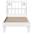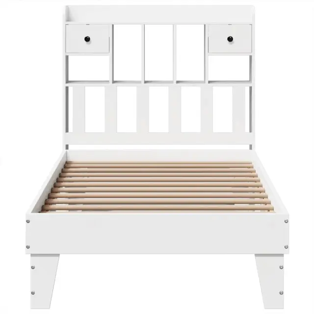 Zagotovite si boljši spanec s tem posteljnim okvirjem! Je prijeten dodatek za vsako spalnico. Stabilen in dolgotrajen okvir: Trdna borovina je znana po svoji trdnosti in trajnosti. Ravni vzorci in značilni vozli prispevajo k njenemu rustikalnemu čaru.Podnožje z letvami za optimalno podporo: Za podporo in zračnost ležišča je posteljni okvir opremljen z letvenim dnom.Dodaten prostor za shranjevanje: To elegantno vzglavje ima 3 priročne predelke in 2 predala, ki nudijo dovolj prostora za shranjevanje, da so vse vaše nočne potrebščine na dosegu roke. Za večje udobje je pod leseno posteljo dodaten prostor, v katerem lahko shranite škatle za shranjevanje, da bodo lepo skrite.Stabilne in vzdržljive noge: Ta postelja je podprta z robustnimi nogami, ki zagotavljajo stabilnost, varnost in trdnost.Samostoječe vzglavje: Samostoječe vzglavje ponuja brezskrbno rešitev za enostavno postavitev in premikanje brez potrebe po vgradnji na steno. Dobro je vedeti:Vzmetnica ni priložena tej postelji. Ponujamo različno izbiro ležišč. V naši trgovini si lahko ogledate ustrezne vzmetnice.Barva: BelaMaterial: Trdna borovinaMaterial letvic: Vezan lesDimenzije: 216,5 x 96 x 110 cm (D x Š x V)Velikost primerne vzmetnice: 90 x 190 cm (Š x D) (vzmetnica ni priložena)S predelki za shranjevanjeZ 2 predalomaPotrebno sestavljanje: Da