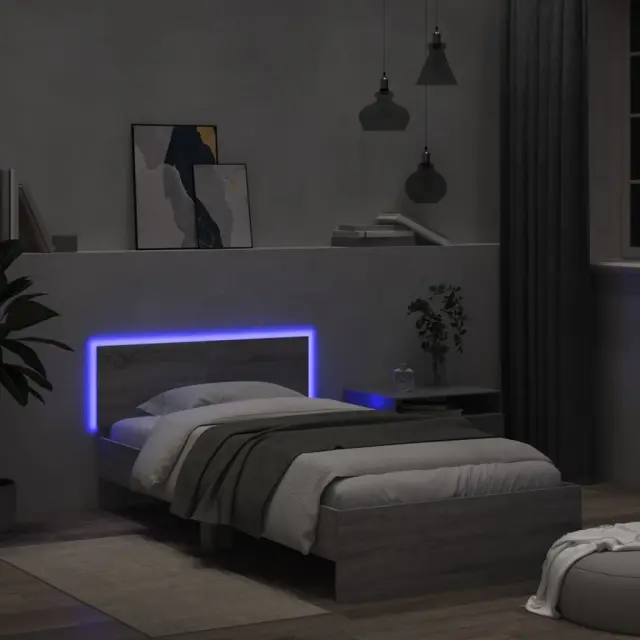 S tem posteljnim okvirjem z vzglavjem in LED lučkami si zagotovite mirnejši spanec! Je prijeten dodatek za vsako spalnico. Vzdržljiv material: Inženirski les se ponaša z izjemno kakovostjo, gladko površino ter močjo, stabilnostjo in odpornostjo na vlago.RGB LED luči: Posteljni okvir je opremljen z živahnimi RGB LED lučkami. Z različnimi prilagodljivimi meniji lahko brez težav spreminjate barvo luči in celo nastavite njihovo samodejno prilagajanje. Te LED lučke ne le poudarjajo sodoben videz posteljnega okvirja, temveč tudi povečujejo njegovo modno privlačnost.Odlična opora: Posteljno vzglavje vam zagotavlja odlično oporo za hrbet, medtem ko sedite v postelji in berete ali gledate televizijo.Trdne letvice: Letvice iz vezanega lesa omogočajo dobro porazdelitev teže in zagotavljajo, da vzmetnica ostane na mestu ob vsakem zasuku in obračanju med spanjem. Dobro je vedeti:Vzmetnica ni priložena tej postelji. Ponujamo različno izbiro ležišč. V naši trgovini si lahko ogledate ustrezne vzmetnice.Izdelek ima priključek USB, ki zahteva certificiran vir napajanja 5 V USB (ni priložen).Barva: Siva sonomaMaterial posteljnega okvirja: Inženirski lesMaterial letvic: Vezan lesSkupne mere: 203 x 104 x 70 cm (D x Š x V)Velikost primerne vzmetnice: 100 x 200 cm (Š x D) (vzmetnica ni priložena)Potrebno sestavljanje: Da Tega izdelka ne uporabljajte, če je katera koli komponenta polomljena, strgana ali manjka. Ta izdelek se napaja z DC 5 V, vendar certificirani 5 V vir napajanja USB ni priložen. Višja napetost lahko povzroči pregrevanje in poškoduje napravo ter povzroči potencialno nevarnost pregrevanja in požara.