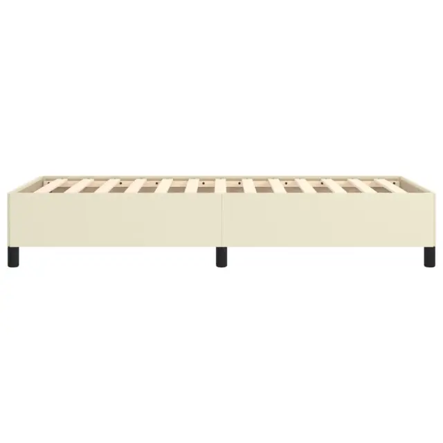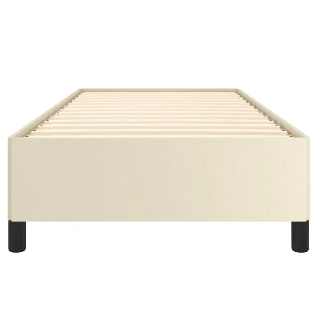 Zagotovite si boljši spanec s tem posteljnim okvirjem! Je prijeten dodatek za vsako spalnico. Trpežno umetno usnje: Vrhunsko umetno usnje je zelo vzdržljiv material. Je odporno na madeže, zato ga lahko preprosto čistite z vlažno krpo. Gladka površina mu prav tako daje razkošen videz in lepoto pravega usnja.Podporne noge: Postelja je podprta s čvrstimi nogami, ki zagotavljajo njeno stabilnost, varnost in trdnost.Letvice iz vezanega lesa: Letvice iz vezanega lesa omogočajo dobro porazdelitev teže in zagotavljajo, da vzmetnica ostane na mestu ob vsakem zasuku in obračanju med spanjem. Opomba:Paket vsebuje samo posteljni okvir. Vzmetnica ni priložena. V naši trgovini si lahko ogledate ustrezne vzmetnice.Vsakemu izdelku je priložen priročnik za enostavno sestavljanje.Barva: KremMaterial: Umetno usnje (75 % polivinilklorid, 5 % bombaž, 20 % poliester), vezan les, konstruiran lesCelotne dimenzije: 193 x 93 x 35 cm (D x Š x V)Velikost primerne vzmetnice: 90 x 190 cm (Š x D) (vzmetnica ni priložena)