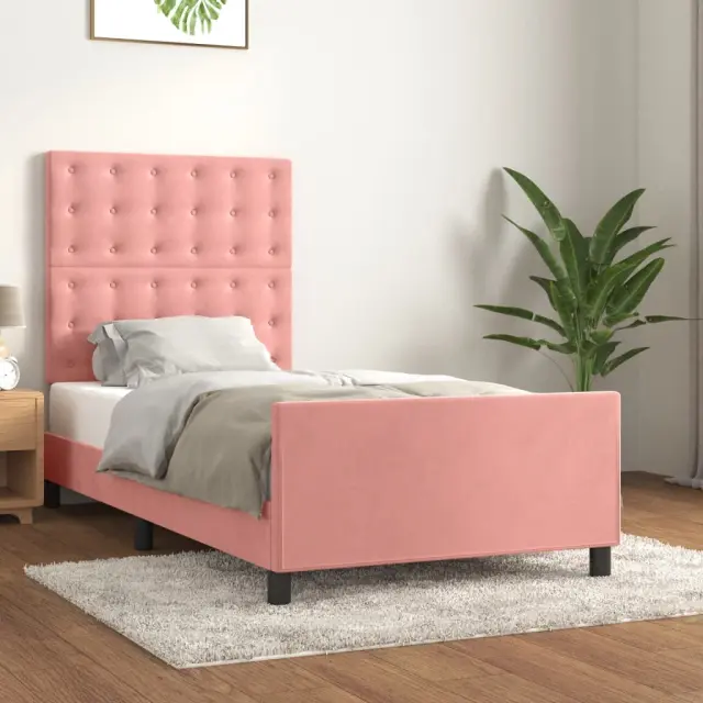 Posteljni okvir - Enojna postelja - Postelja za odrasle z vzglavjem roza 80x200 cm žamet-J9630
