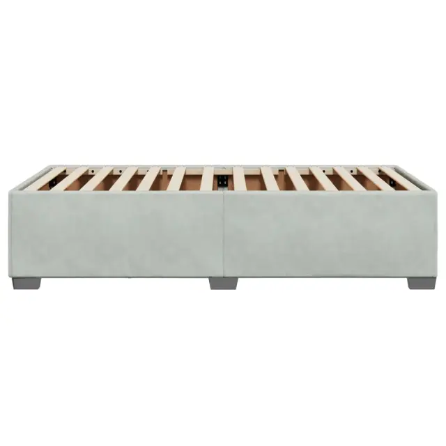Zagotovite si boljši spanec s tem posteljnim okvirjem! Je prijeten dodatek za vsako spalnico. Mehak in udoben material: Vlažna tkanina iz žameta ima mehko in gladko površino, ki zagotavlja prijeten občutek ter vam zagotavlja toploto in popolno udobje.Letvice za optimalno podporo: Ta posteljni okvir je opremljen z letvicami, ki zagotavljajo osnovno podporo in zračnost vašega ležišča.Stabilne in vzdržljive noge: Ta postelja je podprta z robustnimi nogami, ki zagotavljajo stabilnost, varnost in trdnost. Dobro je vedeti:Vzmetnica ni priložena tej postelji. Ponujamo različno izbiro ležišč. V naši trgovini si lahko ogledate ustrezne vzmetnice.Barva: Svetlo sivaMaterial: Žamet (100 % poliester), vezan les, konstruiran lesDimenzije: 200 x 100 x 46 cm (D x Š x V)Velikost primerne vzmetnice: 100 x 200 cm (Š x D) (vzmetnica ni priložena)Utrjene plastične nogicePotrebno sestavljanje: Da