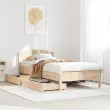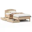 Zagotovite si boljši spanec s tem posteljnim okvirjem! Je prijeten dodatek za vsako spalnico. Stabilen in dolgotrajen okvir: Trdna borovina je znana po svoji trdnosti in trajnosti. Ravni vzorci in značilni vozli prispevajo k njenemu rustikalnemu čaru.Podnožje z letvami za optimalno podporo: Za podporo in zračnost ležišča je posteljni okvir opremljen z letvenim dnom.Vsestransko vzglavje: Ta posteljni okvir je opremljen z vzglavjem, ki zagotavlja odlično oporo hrbtu, ko sedite v postelji in berete ali gledate televizijo, hkrati pa služi tudi kot dekorativni element.Popolnoma izkoriščen prostor: Ta posteljni okvir ima spodaj dva predala, ki omogočata shranjevanje predmetov, kot so dodatna posteljnina, sezonska oblačila in igrače.Preprosto manevriranje: Ta predal za shranjevanje pod posteljo ima štiri kolesa, ki zagotavljajo gladko in lahkotno manevriranje pri drsenju pod posteljo in izpod nje. Dobro je vedeti:Vzmetnica ni priložena tej postelji. Ponujamo različno izbiro ležišč. V naši trgovini si lahko ogledate ustrezne vzmetnice.Potrebno sestavljanje: DaPosteljni okvir z vzglavjem:Material: Trdna borovina (neobdelana)Material letvic: Vezan lesDimenzije: 205,5 x 105,5 x 74,5 cm (D x Š x V)Velikost primerne vzmetnice: 100 x 200 cm (Š x D) (vzmetnica ni priložena)Predal:Material: Trdna borovina (neobdelana)Zunanje dimenzije: 95 x 55 x 16 cm (Š x G x V)Notranje dimenzije: 86,5 x 52,5 x 10 cm (Š x G x V)Maks. nosilnost (vsaka): 20 kgS štirimi kolesiPaket vsebuje:1 x Posteljni okvir z vzglavjem2 x Predal