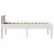 Zagotovite si boljši spanec s tem posteljnim okvirjem! Je prijeten dodatek za vsako spalnico. Stabilen in dolgotrajen okvir: Trdna borovina je znana po svoji trdnosti in trajnosti. Ravni vzorci in značilni vozli prispevajo k njenemu rustikalnemu čaru.Podnožje z letvami za optimalno podporo: Za podporo in zračnost ležišča je posteljni okvir opremljen z letvenim dnom.Dodaten prostor za shranjevanje: Za večje udobje je pod leseno posteljo dodaten prostor, v katerem lahko shranite škatle za shranjevanje, da bodo lepo skrite.Stabilne in vzdržljive noge: Ta postelja je podprta z robustnimi nogami, ki zagotavljajo stabilnost, varnost in trdnost.Vsestransko vzglavje: Ta panelna postelja je opremljena z vzglavjem, ki zagotavlja odlično oporo hrbtu, ko sedite v postelji in berete ali gledate televizijo, hkrati pa služi tudi kot dekorativni element. Dobro je vedeti:Vzmetnica ni priložena tej postelji. Ponujamo različno izbiro ležišč. V naši trgovini si lahko ogledate ustrezne vzmetnice.Barva: BelaMaterial: Trdna borovinaMaterial letvic: Vezan lesDimenzije: 193,5 x 93,5 x 91 cm (D x Š x V)Velikost primerne vzmetnice: 90 x 190 cm (Š x D) (vzmetnica ni priložena)Potrebno sestavljanje: Da