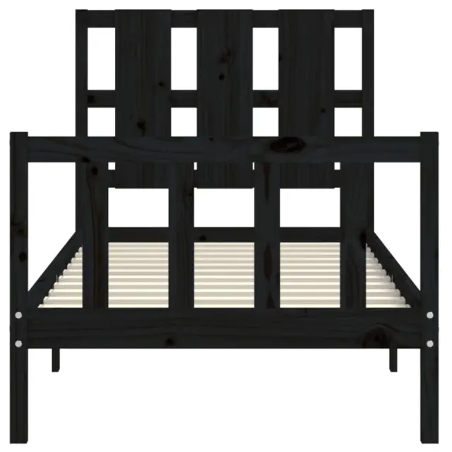 S tem lesenim posteljnim okvirjem lahko uživate v odličnem spancu! To je praktičen in dekorativen dodatek za vaše notranje prostore. Vzdržljiv material: Trdna borovina je čudovit naravni material. Borovina ima ravne vzorce, grče pa dajejo materialu njegov značilen, rustikalen videz. Ta postelja je izdelana iz trdnega borovega lesa, zato je trpežna in vzdržljiva.Letvice iz vezanega lesa: Letvice iz vezanega lesa zagotavljajo dobro porazdelitev teže, kar ležišču zagotavlja prepotrebno oporo in zračnost.Funkcionalno vzglavje in podnožje: Vzglavje in podnožje lesene postelje ohranjata ležišče na mestu. Poleg tega vzglavje zagotavlja odlično oporo hrbtu, ko sedite v postelji in berete ali gledate televizijo. Dobro je vedeti: Vzmetnica ni priložena tej postelji. Ponujamo različno izbiro ležišč. V naši trgovini si lahko ogledate ustrezne vzmetnice.Barva: ČrnaMaterial: Trdna borovinaCelotne dimenzije postelje: 195,5 x 80,5 x 100 cm (D x Š x V)Višina prostora pod posteljo: 21 cmPrimerna velikost vzmetnice (vzmetnica ni vključena): 75 x 190 cm (Š x D) (2FT6 Small Single)Potrebno sestavljanje: Da