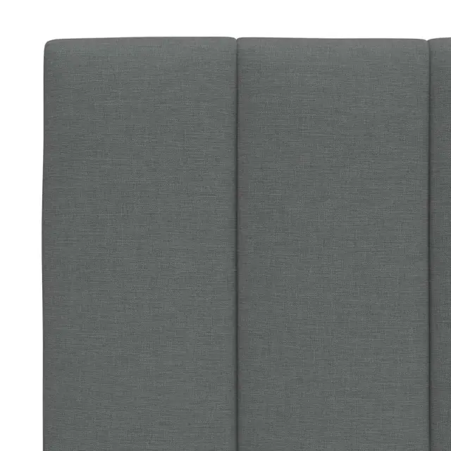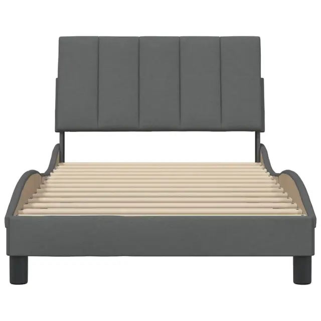 Zagotovite si boljši spanec s tem posteljnim okvirjem! Je prijeten dodatek za vsako spalnico. Mehak in trpežen material: Tkanina iz poliestra ponuja kombinacijo mehkobe, zračnosti in trpežnosti ter vam zagotavlja popolno udobje in prijetnost.Letvice za optimalno podporo: Ta posteljni okvir je opremljen z letvicami, ki zagotavljajo osnovno podporo in zračnost vašega ležišča.Vsestransko vzglavje: Ta posteljni okvir je opremljen z vzglavjem, ki zagotavlja odlično oporo hrbtu, ko sedite v postelji in berete ali gledate televizijo, hkrati pa služi tudi kot dekorativni element.Priročna zasnova: Vzglavna stranica ima zadrgo za preprosto namestitev, pripenjala na zadnji strani pa se lahko uporabijo za pritrditev LED lučk.Valovita stranica: Valoviti videz posteljnega okvirja je eleganten in prefinjen. Dekorju v vašem domu dodaja sodoben in eleganten pridih ter tako postane osrednja točka spalnice. Dobro je vedeti:Vzmetnica ni priložena tej postelji. Ponujamo različno izbiro ležišč. V naši trgovini si lahko ogledate ustrezne vzmetnice.Posteljni okvir:Barva: Temno sivaMaterial: Tkanina (100 % poliester), kovina, vezan les, inženirski lesCelotne dimenzije: 218 x 105 x 74,5 cm (D x Š x V)Velikost primerne vzmetnice: 100 x 200 cm (Š x D) (vzmetnica ni priložena)Oblazinjeno vzglavje:Barva: Temno sivaMaterial: Blago (100 % poliester)Material polnila: PP vlaknaDimenzije: 100 x 3 x 45 cm (D x Š x V)Paket vsebuje:1 x Posteljni okvir1 x Oblazinjeno vzglavje