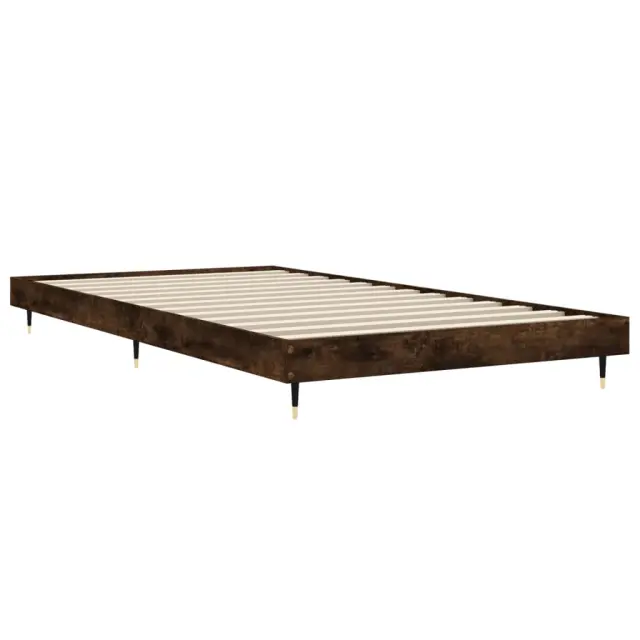 Zagotovite si boljši spanec s tem posteljnim okvirjem! Je prijeten dodatek za vsako spalnico. Vzdržljiv material: Inženirski les se ponaša z izjemno kakovostjo, gladko površino ter močjo, stabilnostjo in odpornostjo na vlago.Kovinske noge: Postelja je podprta s čvrstimi kovinskimi nogami, ki zagotavljajo njeno stabilnost, varnost in trdnost.Letvice iz vezanega lesa: Letvice iz vezanega lesa omogočajo dobro porazdelitev teže in zagotavljajo, da vzmetnica ostane na mestu ob vsakem zasuku in obračanju med spanjem. Dobro je vedeti:Vzmetnica ni priložena tej postelji. Ponujamo različno izbiro ležišč. V naši trgovini si lahko ogledate ustrezne vzmetnice.Barva: Dimljeni hrastMaterial posteljnega okvirja: Inženirski les, kovinaMaterial letvic: Vezan lesCelotne dimenzije: 203 x 103 x 20 cm (D x Š x V)Velikost primerne vzmetnice: 100 x 200 cm (Š x D) (vzmetnica ni priložena)Potrebno sestavljanje: Da