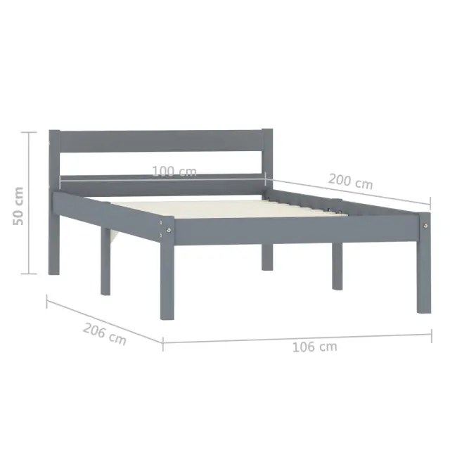 Posteljni okvir - Enojna postelja - Postelja za odrasle siv iz trdne borovine 100x200 cm-J9001