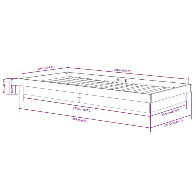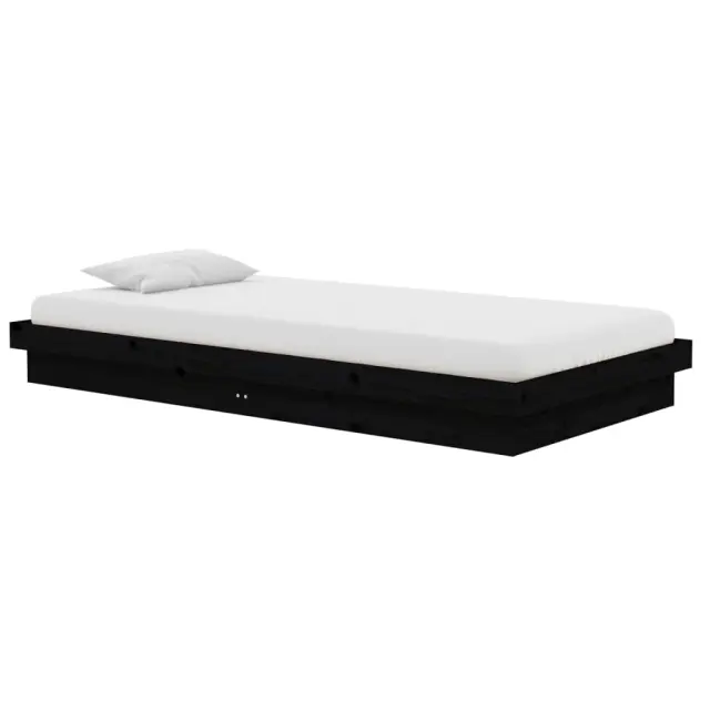 Ta leseni posteljni okvir je popoln za miren spanec. Na praktičen način polepša notranjost vašega doma. Vrhunski material: trdna borovina je čudovit naravni material. Borovina ima ravne vzorce, grče pa dajejo materialu njegov značilen, rustikalen videz.Rustikalni čar: Postelja daje vašemu prostoru rustikalne podtone, ki so lahko resnično sproščujoči. Pomirjujoč učinek tega lesenega posteljnega okvirja spremeni katero koli spalnico ali sobo za goste v pomirjujoč prostor, hkrati pa v prostor doda naravni element.Trdne letvice: Letvice iz vezanega lesa omogočajo dobro porazdelitev teže in zagotavljajo, da vzmetnica ostane na mestu ob vsakem zasuku in obračanju med spanjem. Opomba:Paket vsebuje samo posteljni okvir. Vzmetnica ni priložena. V naši trgovini si lahko ogledate ustrezne vzmetnice.Ta posteljni okvir je primeren za vzmetnico velikosti 100 x 200 cm.Barva: ČrnaMaterial: Trdna borovinaDimenzije: 204 x 103,5 x 21 cm (D x Š x V)Velikost primerne vzmetnice: 100 x 200 cm (Š x D) (vzmetnica ni priložena)Potrebno sestavljanje: Da