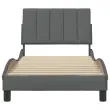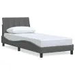 Zagotovite si boljši spanec s tem posteljnim okvirjem! Je prijeten dodatek za vsako spalnico. Mehak in trpežen material: Tkanina iz poliestra ponuja kombinacijo mehkobe, zračnosti in trpežnosti ter vam zagotavlja popolno udobje in prijetnost.Letvice za optimalno podporo: Ta posteljni okvir je opremljen z letvicami, ki zagotavljajo osnovno podporo in zračnost vašega ležišča.Vsestransko vzglavje: Ta posteljni okvir je opremljen z vzglavjem, ki zagotavlja odlično oporo hrbtu, ko sedite v postelji in berete ali gledate televizijo, hkrati pa služi tudi kot dekorativni element.Priročna zasnova: Vzglavna stranica ima zadrgo za preprosto namestitev, pripenjala na zadnji strani pa se lahko uporabijo za pritrditev LED lučk.Valovita stranica: Valoviti videz posteljnega okvirja je eleganten in prefinjen. Dekorju v vašem domu dodaja sodoben in eleganten pridih ter tako postane osrednja točka spalnice. Dobro je vedeti:Vzmetnica ni priložena tej postelji. Ponujamo različno izbiro ležišč. V naši trgovini si lahko ogledate ustrezne vzmetnice.Posteljni okvir:Barva: Temno sivaMaterial: Tkanina (100 % poliester), kovina, vezan les, inženirski lesCelotne dimenzije: 218 x 95 x 74,5 cm (D x Š x V)Velikost primerne vzmetnice: 90 x 200 cm (Š x D) (vzmetnica ni priložena)Oblazinjeno vzglavje:Barva: Temno sivaMaterial: Blago (100 % poliester)Material polnila: PP vlaknaDimenzije: 90 x 3 x 45 cm (D x Š x V)Paket vsebuje:1 x Posteljni okvir1 x Oblazinjeno vzglavje