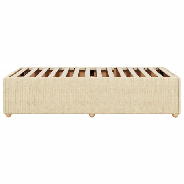 Zagotovite si boljši spanec s tem posteljnim okvirjem! Je prijeten dodatek za vsako spalnico. Mehak in trpežen material: Tkanina iz poliestra združuje mehkobo, zračnost in trpežnost ter vam zagotavlja popolno udobje in prijetnost.Letvice za optimalno podporo: Ta posteljni okvir je opremljen z letvicami, ki zagotavljajo osnovno podporo in zračnost vašega ležišča.Stabilne in vzdržljive noge: Ta postelja je podprta z robustnimi nogami, ki zagotavljajo stabilnost, varnost in trdnost. Dobro je vedeti:Vzmetnica ni priložena tej postelji. Ponujamo različno izbiro ležišč. V naši trgovini si lahko ogledate ustrezne vzmetnice.Barva: KremMaterial: Blago (100 % poliester), vezan les, konstruiran lesDimenzije: 200 x 80 x 46 cm (D x Š x V)Velikost primerne vzmetnice: 80 x 200 cm (Š x D) (vzmetnica ni priložena)Utrjene plastične nogicePotrebno sestavljanje: Da