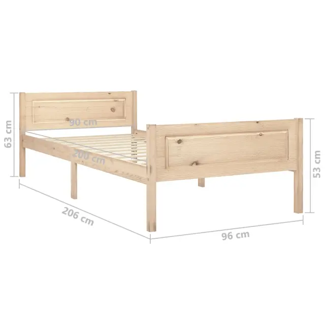 Posteljni okvir - Enojna postelja - Postelja za odrasle iz trdne borovine 90x200 cm-J8650