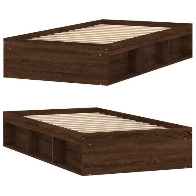 Ustvarite moderno spalnico s tem posteljnim okvirjem! To bo praktičen in okrasen dodatek za vaše notranje prostore. Vzdržljiv material: Inženirski les se ponaša z izjemno kakovostjo, gladko površino ter močjo, stabilnostjo in odpornostjo na vlago.Letvice iz vezanega lesa: Letvice iz vezanega lesa omogočajo dobro porazdelitev teže in zagotavljajo, da vzmetnica ostane na mestu ob vsakem zasuku in obračanju med spanjem.Dodaten prostor za shranjevanje: Postelja za goste ima skupno 6 predelkov na obeh straneh postelje za shranjevanje stvari, kot so knjige, lončnice in drugi okraski. Dobro je vedeti:Vzmetnica ni priložena tej postelji. Ponujamo različno izbiro ležišč. V naši trgovini si lahko ogledate ustrezne vzmetnice.Barva: Rjav hrastMaterial posteljnega okvirja: Inženirski les, trdna borovinaMaterial letvic: Vezan lesCelotne dimenzije: 203 x 103 x 35 cm (D x Š x V)Primerna velikost vzmetnice (vzmetnica ni vključena): 100 x 200 cm (Š x D)Potrebno sestavljanje: Da