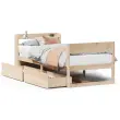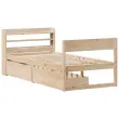 Zagotovite si boljši spanec s tem posteljnim okvirjem! Je prijeten dodatek za vsako spalnico. Stabilen in dolgotrajen okvir: Trdna borovina je znana po svoji trdnosti in trajnosti. Ravni vzorci in značilni vozli prispevajo k njenemu rustikalnemu čaru.Podnožje z letvami za optimalno podporo: Za podporo in zračnost ležišča je posteljni okvir opremljen z letvenim dnom.Popolnoma izkoriščen prostor: Ta posteljni okvir ima spodaj dva predala, ki omogočata shranjevanje predmetov, kot so dodatna posteljnina, sezonska oblačila in igrače.Veliko prostora za shranjevanje: To elegantno posteljno vzglavje ima tri priročne police, ki ponujajo veliko prostora za shranjevanje, da bodo vaše večerne potrebščine na dosegu roke.Samostoječe vzglavje: Samostoječe vzglavje ponuja brezskrbno rešitev za enostavno postavitev in premikanje brez potrebe po vgradnji na steno. Dobro je vedeti:Vzmetnica ni priložena tej postelji. Ponujamo različno izbiro ležišč. V naši trgovini si lahko ogledate ustrezne vzmetnice.Material: Trdna borovina (neobdelana)Material letvic: Vezan lesCelotne dimenzije: 218 x 100 x 82 cm (D x Š x V)Velikost primerne vzmetnice: 90 x 200 cm (Š x D) (vzmetnica ni priložena)Dimenzije predala: 95,5 x 47 x 25,5 cm (D x Š x V)S policami za shranjevanjePotrebno sestavljanje: Da Paket vsebuje:1 x Posteljni okvir1 x Vzglavje2 x Predal