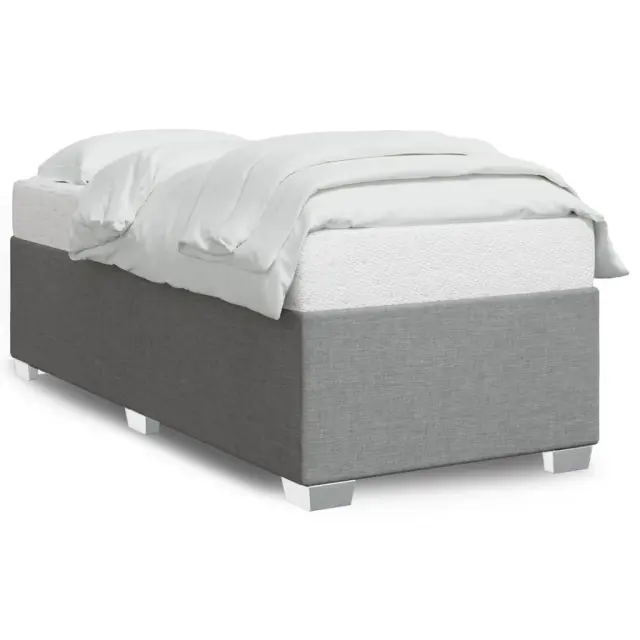 Zagotovite si boljši spanec s tem posteljnim okvirjem! Je prijeten dodatek za vsako spalnico. Mehak in trpežen material: Tkanina iz poliestra združuje mehkobo, zračnost in trpežnost ter vam zagotavlja popolno udobje in prijetnost.Letvice za optimalno podporo: Ta posteljni okvir je opremljen z letvicami, ki zagotavljajo osnovno podporo in zračnost vašega ležišča.Stabilne in vzdržljive noge: Ta postelja je podprta z robustnimi nogami, ki zagotavljajo stabilnost, varnost in trdnost. Dobro je vedeti:Vzmetnica ni priložena tej postelji. Ponujamo različno izbiro ležišč. V naši trgovini si lahko ogledate ustrezne vzmetnice.Barva: Svetlo sivaMaterial: Blago (100 % poliester), vezan les, konstruiran lesDimenzije: 200 x 90 x 46 cm (D x Š x V)Velikost primerne vzmetnice: 90 x 200 cm (Š x D) (vzmetnica ni priložena)Utrjene plastične nogicePotrebno sestavljanje: Da