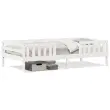 Dodajte svoji spalnici moderen pridih s tem posteljnim okvirjem! Je praktičen in dekorativen dodatek vašemu bivalnemu prostoru. Stabilen in dolgotrajen okvir: Trdna borovina je znana po svoji trdnosti in trajnosti. Ravni vzorci in značilni vozli prispevajo k njenemu rustikalnemu čaru.Letvice iz vezanega lesa: Letvice iz vezanega lesa omogočajo dobro porazdelitev teže in zagotavljajo, da vzmetnica ostane na mestu ob vsakem zasuku in obračanju med spanjem.Moderna zasnova: Svojim notranjim prostorom dodajte moderen stil! Moderen stil notranjih prostorov vključuje čiste linije, minimalističen videz in naravno svetlobo. Dobro je vedeti:Vzmetnica ni priložena tej postelji. Ponujamo različno izbiro ležišč. V naši trgovini si lahko ogledate ustrezne vzmetnice.Barva: BelaMaterial: Trdna borovinaMaterial letvic: Vezan lesCelotne dimenzije: 195,5 x 80,5 x 56 cm (D x Š x V)Velikost primerne vzmetnice: 75 x 190 cm (Š x D) (vzmetnica ni priložena)Potrebno sestavljanje: Da OPOZORILO. Otroške postelje ne postavljajte v bližino virov toplote, oken in drugega pohištva. OPOZORILO. Otroške postelje ne uporabljajte, če je kateri koli del zlomljen, strgan ali manjka.