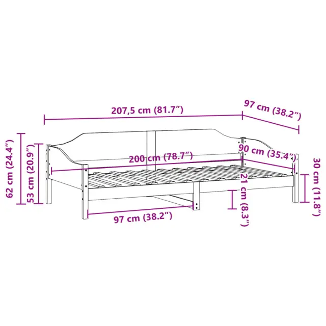 Dodajte svoji spalnici moderen pridih s tem posteljnim okvirjem! Je praktičen in dekorativen dodatek vašemu bivalnemu prostoru. Stabilen in dolgotrajen okvir: Trdna borovina je znana po svoji trdnosti in trajnosti. Ravni vzorci in značilni vozli prispevajo k njenemu rustikalnemu čaru.Letvice iz vezanega lesa: Letvice iz vezanega lesa omogočajo dobro porazdelitev teže in zagotavljajo, da vzmetnica ostane na mestu ob vsakem zasuku in obračanju med spanjem.Moderna zasnova: Svojim notranjim prostorom dodajte moderen stil! Moderen stil notranjih prostorov vključuje čiste linije, minimalističen videz in naravno svetlobo. Dobro je vedeti:Vzmetnica ni priložena tej postelji. Ponujamo različno izbiro ležišč. V naši trgovini si lahko ogledate ustrezne vzmetnice.Barva: BelaMaterial: Trdna borovinaMaterial letvic: Vezan lesCelotne dimenzije: 207,5 x 97 x 62 cm (D x Š x V)Velikost primerne vzmetnice: 90 x 200 cm (Š x D) (vzmetnica ni priložena)Potrebno sestavljanje: Da