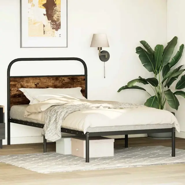 Če iščete trpežen posteljni okvir za svojo spalnico, je ta klasični posteljni okvir z elegantnim in brezčasnim dizajnom popolna izbira!Robustna kovinska konstrukcija: Okvir postelje je izdelan iz jekla. Jeklo je izjemno trd in močan material, ki zagotavlja izjemno trdnost in stabilnost.Stabilne in vzdržljive noge: Ta postelja ima trdne noge, ki zagotavljajo stabilnost, varnost in trdnost.Vsestransko vzglavje: Ta posteljni okvir je opremljen z vzglavjem, ki zagotavlja odlično oporo hrbtu, ko sedite v postelji in berete ali gledate televizijo, hkrati pa služi tudi kot dekorativni element.Podnožje z letvami za optimalno podporo: Za podporo in zračnost ležišča je posteljni okvir opremljen z letvenim dnom.Dobro je vedeti:Vzmetnica ni vključena v to posteljo. Ponujamo različne vzmetnice. V naši trgovini lahko poiščete ustrezno ležišče.Barva: Dimljeni hrastMaterial: Jeklo, inženirski lesCelotne dimenzije: 196 x 105 x 100 cm (D x Š x V)Višina prostora pod posteljo: 27 cmVelikost primerne vzmetnice: 100 x 190 cm (Š x D) (vzmetnica ni priložena)Z vzglavjemPotrebno sestavljanje: Da