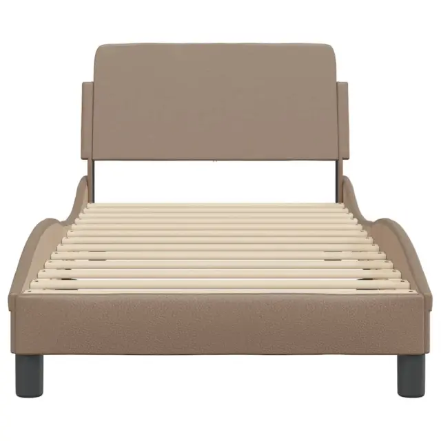 Zagotovite si boljši spanec s tem posteljnim okvirjem z vzglavjem! Je prijeten dodatek za vsako spalnico. Trpežno umetno usnje: Vrhunsko umetno usnje je zelo vzdržljiv material. Je odporno na madeže, zato ga lahko preprosto čistite z vlažno krpo. Gladka površina mu prav tako daje razkošen videz in lepoto pravega usnja.Podporne noge: Postelja je podprta s čvrstimi nogami, ki zagotavljajo njeno stabilnost, varnost in trdnost.Letvice iz vezanega lesa: Letvice iz vezanega lesa omogočajo dobro porazdelitev teže in zagotavljajo, da vzmetnica ostane na mestu ob vsakem zasuku in obračanju med spanjem.Udobna opora: To vzglavje za posteljo vam zagotavlja odlično oporo za hrbet, ko sedite na postelji in berete ali gledate filme.Valovita stranica: Valoviti videz posteljnega okvirja je eleganten in prefinjen. Dekorju v vašem domu dodaja sodoben in eleganten pridih ter tako postane osrednja točka spalnice. Dobro je vedeti:Vzmetnica ni priložena tej postelji. Ponujamo različno izbiro ležišč. V naši trgovini si lahko ogledate ustrezne vzmetnice.Barva: KapučinoMaterial: Umetno usnje (75 % polivinilklorid, 5 % bombaž, 20 % poliester), kovina, vezan les, konstruiran lesCelotne dimenzije: 218 x 85 x 74,5 cm (D x Š x V)Velikost primerne vzmetnice: 80 x 200 cm (Š x D) (vzmetnica ni priložena)Potrebno sestavljanje: Da