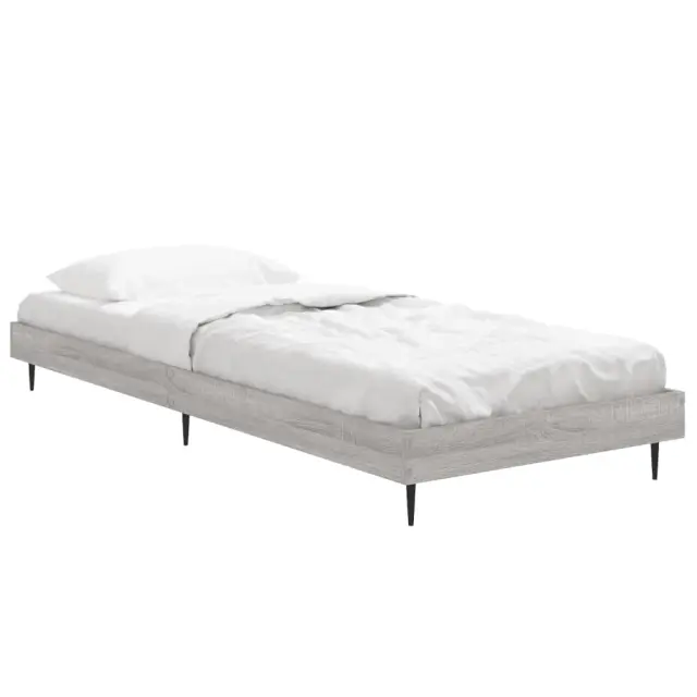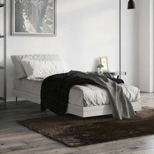 Zagotovite si boljši spanec s tem posteljnim okvirjem! Je prijeten dodatek za vsako spalnico. Vzdržljiv material: Inženirski les se ponaša z izjemno kakovostjo, gladko površino ter močjo, stabilnostjo in odpornostjo na vlago.Kovinske noge: Postelja je podprta s čvrstimi kovinskimi nogami, ki zagotavljajo njeno stabilnost, varnost in trdnost.Letvice iz vezanega lesa: Letvice iz vezanega lesa omogočajo dobro porazdelitev teže in zagotavljajo, da vzmetnica ostane na mestu ob vsakem zasuku in obračanju med spanjem. Dobro je vedeti:Vzmetnica ni priložena tej postelji. Ponujamo različno izbiro ležišč. V naši trgovini si lahko ogledate ustrezne vzmetnice.Barva: Siva sonomaMaterial posteljnega okvirja: Inženirski les, kovinaMaterial letvic: Vezan lesCelotne dimenzije: 193 x 78 x 20 cm (D x Š x V)Velikost primerne vzmetnice: 75 x 190 cm (Š x D) (vzmetnica ni priložena)Potrebno sestavljanje: Da
